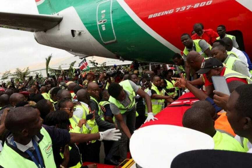 His death sent shockwaves across the nation and the wider East African region, where he had long been seen as a symbol of democracy, reform, and resistance against authoritarian rule. What was intended to be a solemn military reception quickly turned into a chaotic scene. As Odinga’s flag-draped coffin was being offloaded from the Kenya Airways cargo hold, throngs of mourners—many waving twigs, flags, and portraits of “Baba,” as Odinga was affectionately known—pushed past security barriers.Witnesses described an overwhelming wave of emotion as supporters sang liberation songs, chanted his name, and cried openly. Some mourners rode motorbikes across the tarmac, while others climbed fences in an attempt to get closer to the plane.The unanticipated surge forced authorities to suspend airport operations for nearly two hours, as security personnel struggled to restore order. President William Ruto, several cabinet members, and senior opposition leaders—who had gathered to receive Odinga’s remains with full military honors—were temporarily escorted away for safety.